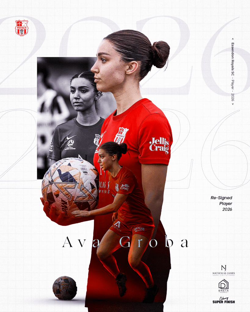 Essendon Royals are pleased to confirm that attacker Ava Groba has re-signed for the 2026 NPLW Victoria season.