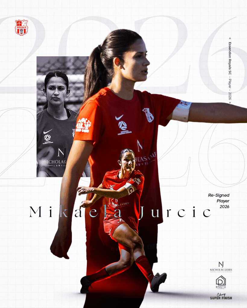 Essendon Royals are proud to confirm that Mikaela Jurcic has re-signed for the 2026 NPLW Victoria season, continuing her leadership role at Cross Keys.