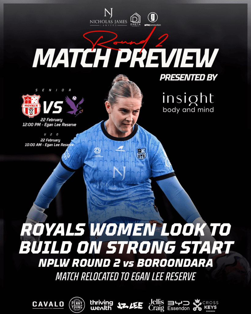 With the fixture relocated to Knox City FC’s Egan Lee Reserve, the Royals take on Boroondara Eagles FC in what shapes as one of the more intriguing early contests of Round 2. Both sides arrive full of confidence after strong starts, and both will view this match as an opportunity to entrench themselves among the early pacesetters.